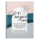 Personnalisé! Ce magnifique Journal de prière rechargeable vous permet d'ajouter une citation biblique de la foi chrétienne, une phrase, un proverbe, une écriture de votre choix ainsi qu'un nom. Il fait un cadeau parfait pour vous-même, la femme du pasteur, les femmes en ministère, une Godgirl ou Godson pour leur première communion sainte, des cadeaux de confirmation pour adultes, une Godmère ou le parrain comme Noël d'anniversaire ou un cadeau de remerciement. Vous pouvez faire un don au prêtre, pasteur, religieuse, ministre, diacre, vicaire, évêque ou tout autre membre du clergé pour l'anniversaire de l'ordination, la retraite, quitter la paroisse, l'appréciation ou autre. Fait aussi un beau cadeau de gardien pour un parent, père mère fils fille ami de famille ou parent qui vous connaissez est chrétien et pratique leur foi et de prier. Cela fait aussi un beau cadeau pour les parents-Godparents sur le baptême, le baptême de votre fils, fille, jumeaux. Disponible dans d'autres couleurs et designs. — Voici quelques instructions sur la façon de garder un journal de prière à l'aide d'un carnet uni : Choisissez un carnet : Nous avons beaucoup de modèles à choisir, qui peuvent être personnalisés : Voir tous ici https://www.zazzle.com/collections/christian_faith_prayer_journals-119914107308333884 — Sélectionnez un carnet que vous vous sentez à l'aise et qui contient beaucoup de pages vierges et doublées pour l'écriture. Songez à choisir un carnet portable pour pouvoir l'emmener avec vous où que vous alliez. — Prévoir un temps de prière : Planifier un temps régulier de prière et de réflexion chaque jour. Cela peut être le matin, le soir, ou une autre heure qui fonctionne le mieux pour vous. — Sélectionnez une invite : Choisissez une invite dans la liste ci-dessus ou créez la vôtre pour vous aider à guider votre temps de prière. Vous pouvez également utiliser un plan de dévotion quotidienne ou de lecture de la Bible pour guider vos réflexions. — Écrivez votre prière : Utilisez les pages blanches et doublées de votre carnet pour écrire votre prière. Commencez par s'adresser à Dieu et exprimer sa gratitude, confession ou intercession, selon l'invite que vous avez choisie. Ensuite, réfléchissez à un passage de l'Écriture ou à une demande personnelle et écrivez vos pensées, sentiments et idées. — Revoir et réfléchir : Prenez un peu de temps pour examiner et réfléchir sur vos écritures de prières. Recherchez des motifs ou des thèmes qui émergent au fil du temps et considérez comment Dieu travaille dans votre vie. — Soyez cohérent : Faites un effort pour écrire dans votre journal de prière de façon cohérente, même si ce ne sont que quelques phrases chaque jour. Cela vous aidera à développer une habitude de réflexion et à approfondir votre relation avec Dieu. — En suivant ces étapes, vous pouvez créer un journal de prière significatif et personnalisé qui vous aide à vous connecter à Dieu et à grandir dans votre foi. — Les revues de prières personnalisées de Zazzle peuvent faire des cadeaux merveilleux pour une variété d'occasions et de destinataires. Ces revues peuvent être customisées avec le nom du récipiendaire et sont présentées dans une gamme de modèles adaptés aux hommes, aux femmes, aux filles et aux garçons. Que vous cherchiez un cadeau significatif pour un ami, un membre de la famille ou un membre de l'église, un journal de prière personnalisé peut être une belle façon de montrer votre amour et votre soutien. Ces revues peuvent faire de grands cadeaux pour des événements tels que baptêmes, confirmations, mariages et diplômes, ainsi que pour des fêtes comme Noël et Pâques. La variété des modèles disponibles chez Zazzle signifie qu'il y a quelque chose pour tout le monde, de l'élégant et sobre à l'audacieux et coloré. Vous pouvez choisir un design qui reflète la personnalité ou les intérêts du destinataire, ou choisir un design religieux plus traditionnel. En plus de faire de grands cadeaux, les revues de prières personnalisées de Zazzle peuvent également être une façon merveilleuse d'améliorer votre propre pratique de prière. En ayant un journal qui est le vôtre, vous pouvez créer un espace de réflexion et de conversation avec Dieu qui est à la fois personnel et significatif. Donc, que vous cherchiez un cadeau réfléchi pour un être cher ou un moyen d'approfondir votre propre vie de prière, considérez un journal de prière personnalisé de Zazzle. Avec une gamme de conceptions et d'options de personnalisation disponibles, vous êtes sûr de trouver le journal parfait pour vos besoins.