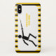 Fencer black silhouette fencing custom iPhone x case featuring a minimalist pictogram icon of a black silhouette of a fencer holding his sword and your text on white background with yellow and black striped border.