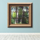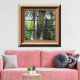 Il présente une fenêtre encadrée en faux bois donnant sur les arbres tropicaux. Le cadre continue autour des côtés de la toile. Visualisez des images supplémentaires pour un regard plus attentif.