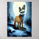 Fennec Fox in the snowy mountain, it is snowing in the night with a moon in the background. This is a AI generated art.