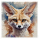 Un renard Fennec avec une aquarelle détaillée aux yeux expressifs est représenté contre un arrière - plan doux et flou. Les couleurs naturelles rehaussent l'aspect vivant.