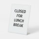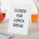 Panneau "Fermé pour la pause déjeuner", conçu pour les points de vente au détail, les comptoirs de caisse, les cabines d'artisanat, les magasins pop up, etc.