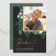 Élégant faire-part de graduation photo, avec une photo carré agrémentée d'un feuillage vert aquarelle et de fleurs blanches, et parée de feuille d'or. "Graduate" apparaît ci-dessous, ainsi que le nom de votre diplômé et l'école ou le collège. Ajoutez un message personnel à l'arrière, ainsi qu'une photo supplémentaire.