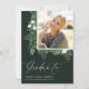 L'élégant faire-part de graduation photo comprend une photo carré agrémentée d'une aquarelle verte feuillage de fougères et de fleurs blanches. "Graduate" apparaît ci-dessous, ainsi que le nom de votre diplômé et l'école ou le collège. Ajoutez un message personnel à l'arrière, ainsi qu'une photo supplémentaire.