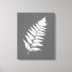 Fern Frond, White on Charcoal Grey / Grey Canvas Print