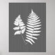 Fern Fronds, White on Charcoal Grey / Grey Poster