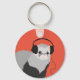 Ferret keychain with a custom QR code and the text Scan If Lost for a music lover who also loves ferrets. This musical design features a vector illustration of a cute fluffy ferret wearing big headphones and listening to its favourite songs. This fun keychain will also make a great gift for a musician who has a pet ferret.