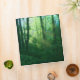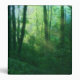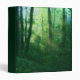 Rays of the morning sun streaming into a brilliantly green summer forest, with massive ivy-covered trees and a thick blanket of underbrush. A photograph digitally manipulated to give the over-grown vines, blue-green mist, golden god-rays, and spring green tree leaves a dream-like quality.
