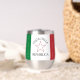 Celebrate Festa della Repubblica, the National Day of Italy, with this striking June 2nd stainless steel stemless wine tumbler, which features the three colours of Italy's national flag, Stellone d'Italia (Great Star of Italy), and customizable top and bottom text commemorating the birth of the Italian Republic. Reverse shows identical design.