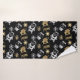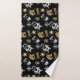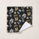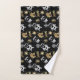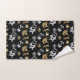 Joli set de serviettes de bain à thème de Noël avec des flocons de neige, le Père Noël, chaussettes de Noël et bonhomme de neige en faux or et argent sur arrière - plan noir.