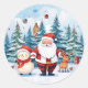 Set against a backdrop of festive holiday elements, Santa Claus is surrounded by glittering snowflakes, holly leaves, and cheerful presents. The vibrant colours and intricate details make this sticker a visual feast, adding a touch of Christmas magic to any space.