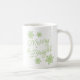 This Christmas coffee or tea mug is a perfect way to send seasonal greetings and holiday wishes to your family and friends. The classic Merry & Bright greeting on the mug is written in an elegant vintage bright sage green coloured hand-lettered calligraphy script font, and is surrounded by cute frosty snowflakes in the same colour. The design is simple and classy, and also trendy and eye-catching.