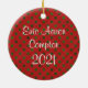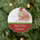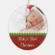 Sweet baby's first Christmas photo ornament done in red with green polka dots. The top half of the front is ready for your baby's photograph and the white script text, on the front and back, is ready to personalize. Lovely way to commemorate your child's first Christmas, and great gift idea for the grand parents.