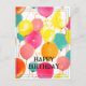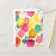 Send your family or friend birthday wishes by giving them this birthday postcard art designed with colourful balloons to celebrate their special day! Brightly decorated in shades of teal, fuchsia, orange, yellow and pink. Back of postcard reads: “Wishing you a very special day and a year filled with health and happiness!” Closing may be personalized.