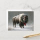 Celebrate the wild side of winter with this unique bison illustration. Standing in a snowy landscape, the majestic creature wears a festive wreath adorned with red berries and a bold red bow.