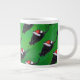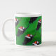 Festive Black Cat Pattern on Green Large Coffee Mug
