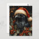 A cute black raven or crow with a santa hat festive Christmas or yule themed design