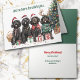 Quatre chiens de Labradoodle noirs d'aquarelle portent leur tenue de vacances et s'assoient avec des paquets cadeaux sur le devant de cette carte de Noël. Trois d'entre elles portent des chapeaux de Père Noël rouges et blancs, et une porte des bois. Le texte ci-dessus dit "Nous sommes ici pour vous souhaiter...", et le sentiment se poursuit à l'intérieur. Le texte est entièrement personnalisable, vous pouvez donc le faire dire comme vous voulez. Mignonne ! Voir plus d'images et de produits pour chat et chien à Dog Village.