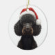 Festive Black Poodle Dog in Santa Hat Illustration Ceramic Ornament
