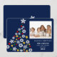 Send warm holiday wishes with this personalized Christmas photo card featuring a festive blue background and a dazzling Christmas tree design made of white snowflakes, golden stars, and colourful ornaments. The layout includes space for your favourite family photo alongside a custom holiday greeting, family name, and year, creating a heartfelt keepsake to share with loved ones. Perfect for Season’s Greetings, holiday cards, family Christmas mailings, and winter celebrations, this custom photocard combines modern style with traditional holiday charm for a memorable way to spread cheer.