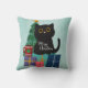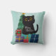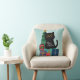 Festive Blue Cute Cat Coffee Merry Christmas Throw Pillow