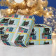 Festive Blue Gold Christmas Black Cat Coffee Wrapping Paper