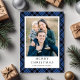 Festive Blue Plaid Photo Christmas Holiday Card.