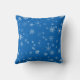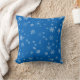 Festive Blue and White Snowflake Pattern Christmas Throw Pillow. The design has white snowflakes in different shapes and sizes on a blue background.