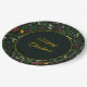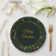 Merry Christmas paper plate with elegant dark botanical repeated pattern with poinsettia