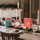 This festive Christmas wrapping paper showcases modern typography featuring Santa Claus's cheerful greeting, "Ho! Ho! Ho!" in vibrant red, green, and golden hues. The design is both elegant and fun, perfect for spreading joy and adding a touch of holiday cheer to your Christmas gifting. The stylish and colourful presentation makes it an excellent choice for wrapping presents with a festive flair.
