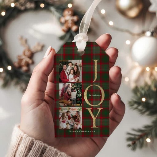 Modern Festive 3 Photo collage Christmas Holiday Card in buffalo plaid