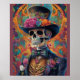 Step into the vibrancy of Mexico's Dia de los Muertos with this lively sugar skull dapper skeleton. Adorned in colourful floral accents and traditional calaveras imagery, this artistic tribute captures the essence of celebration and honour. Embrace the cultural richness and festive spirit of this Mexican holiday through the intricate details of this captivating sugar skull creation, a fusion of tradition and artistic expression.