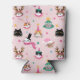 Festive Cat Faces in Holiday Hats Pattern Can Cooler