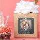 Completely customizable photo sticker featuring beaded and swirly white frame with optional drop shadow overlay on black chalkboard background with festive holiday greeting and decorative ornament with one line of customizable text.