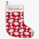 Festive red Christmas stocking printed with white chef and cook hats. The perfect christmas gift for chefs, cooks, bakers and caterers
