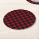 Festive Chequered Red & Black Plaid Pattern Round Paper Coaster.