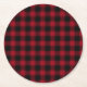 Festive Chequered Red & Black Plaid Pattern Round Paper Coaster
