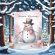 Festive Christmas add text snowman watercolor Holiday Card