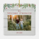 Cet ornement de Noël est orné d'une verdure hivernale branchée dessinée à la main le long du sommet avec un arrière - plan blanc propre. Personnalisez avec votre nom de famille, votre photo et votre date.