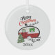 festive Christmas camper word art Glass Ornament