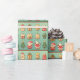 Wrap your gifts in festive cheer with our delightful gift paper adorned with lovely Christmas cookies, featuring Santa Claus, Mrs. Claus, houses, trees with stars, and delicious treats, all set against a vibrant green background.