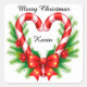 A vibrant Christmas-themed composition featuring candy canes forming a heart shape surrounded by evergreens, red bows with gold accents, and festive holly berries.