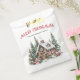 Add a festive touch to your holiday celebration with this Christmas treat or favour bag featuring a cozy watercolor winter cabin and forest scene. The design shows a snowy cabin nestled among pine trees and holly berries, with a wreath on the door and smoke gently rising from the chimney—bringing a warm and inviting holiday vibe.