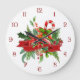 Festive Christmas Floral, Ribbon & Candy Cane Large Clock