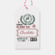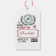 This festive Christmas gift tag, adorned with a North Pole design and whimsical snowflakes, adds a touch of holiday cheer to gift wrapping. It's perfect for igniting cozy moments while celebrating the magic of Christmas with loved ones.