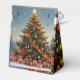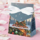 A charming small favour box featuring a beautifully printed Christmas tree adorned with colourful lights and a shining golden star, surrounded by festive gift boxes on a snowy backdrop.