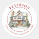 These awesome return address labels with a festive home in winter with snow and Christmas decorations, your last name and address in red will make addressing your Christmas moving cards just that much easier!  They are so easy to just stick on the envelope!   The font is crisp and clean making them look modern yet traditional.  It is so easy to make these your own.  Simply select Personalize this template and type in your family name and your address.  It's that easy!