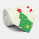 The image is a pattern of Christmas-themed illustrations on a cream background. The illustrations include Christmas trees of various sizes, ornaments in red, yellow, and green, candy canes, snowflakes, holly leaves and berries, poinsettias, and wrapped presents. The style is whimsical and childlike, with simple shapes and bright colours.