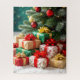 A festive holiday puzzle featuring beautifully wrapped Christmas presents under a sparkling tree with glowing ornaments and cozy winter charm. Perfect for celebrating the season and bringing families together for hours of fun. The number of pieces and puzzle size can be customized to any of the other rectangular sizes offered, making it ideal for puzzlers of all ages and skill levels.