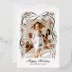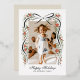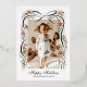 Send you family and friends a family update and message of holiday cheer with this one-photo Christmas card featuring a trendy, hand-drawn illustration of a black ribbon accented with festive sprigs of red poinsettia flowers, greenery and real gold foil metallic berry dots. Traditional fonts keep the design feeling high end and traditional making this holiday card an excellent choice for the romantic with a love for trend-forward grand millennial design.